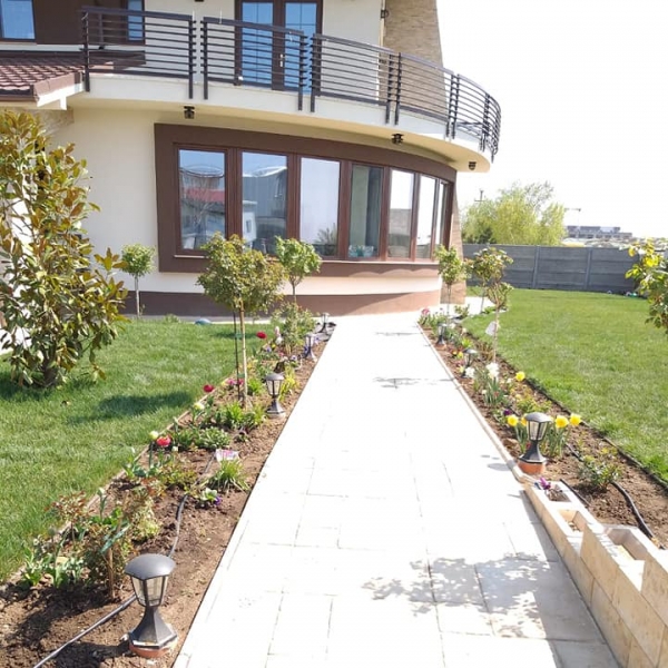 Plantari arbori, arbusti si flori. Gazonul, pietrisul decorativ/pavajul, formele geometrice create de acestea sunt excelent puse in evidenta prin prezenta unui arbore solitar, aranjamente de arbusti decorativi si flori, plante perene si de sezon.