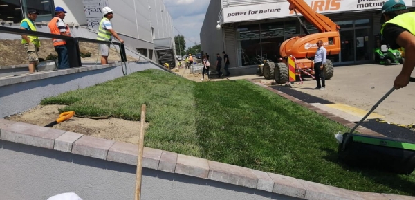 Executie spatii cu gazon prin insamantare sau rulouri de gazon. Peluza de gazon este fara indoiala un element de efect intr-o gradina, si necesita o atentie deosebita atat la amenajare cat si la intretinere. Obtinerea unei suprafete cu iarba se poate realiza prin insamantare, hidroinsamantare sau prin montarea de rulouri de gazon (simplu, rapid, de efect).